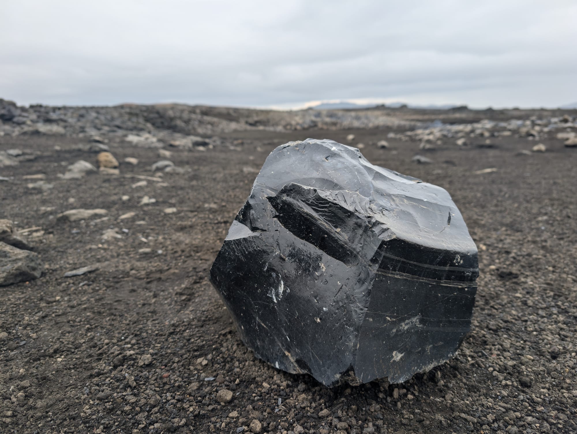 Earlier on the Laugavegur, we’d walked across obsidian, which forms when lava cools extremely fast. It doesn’t have time to crystallize, so it turns into dense, smooth, glassy rock. Heavy in the hand. Solid.