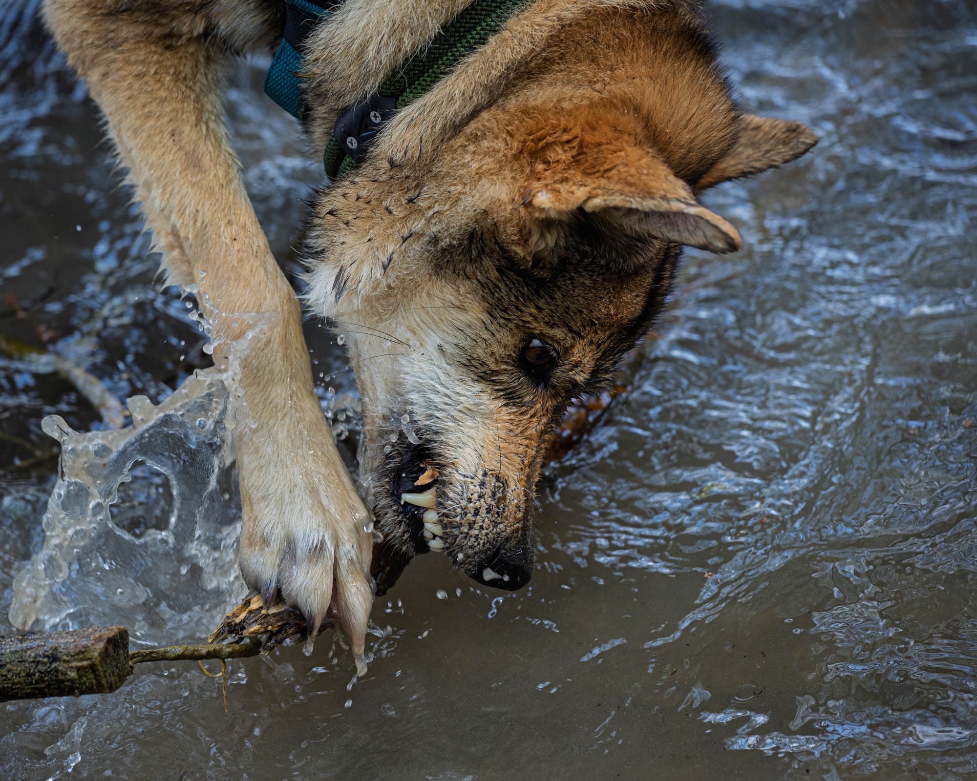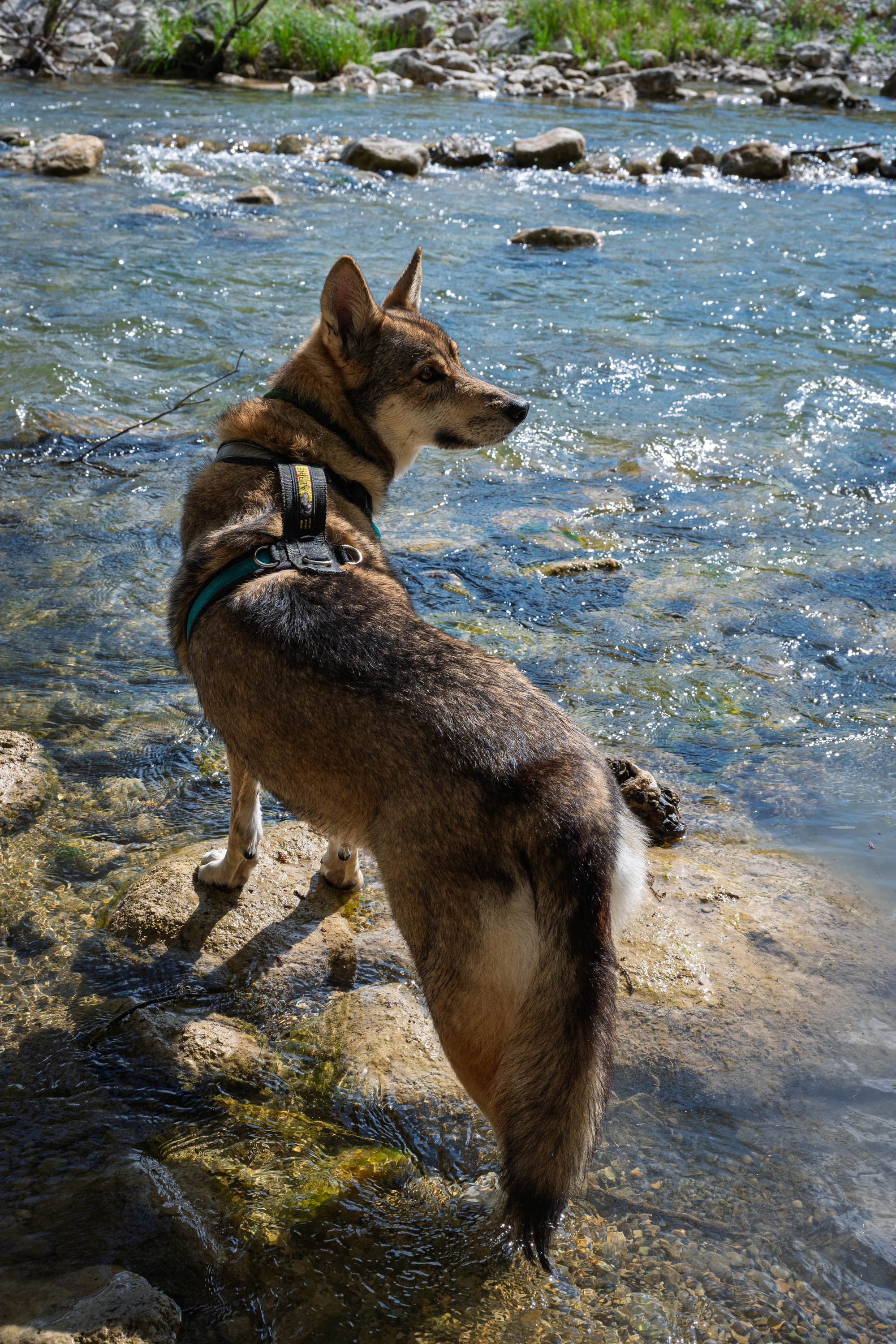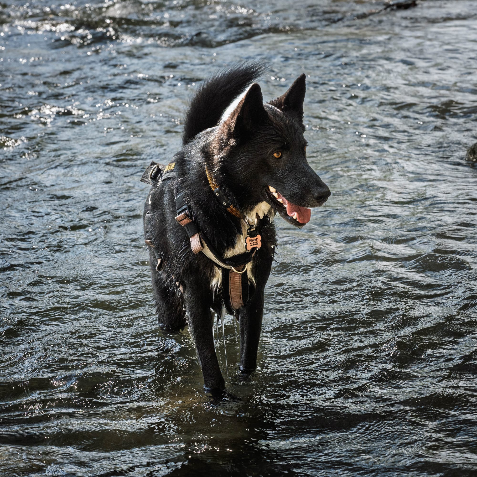 From our site, it was about a ten-minute walk down to the river, and that became the center of the stay. We went down two or three times a day. The dogs swam often. I got in a few times.