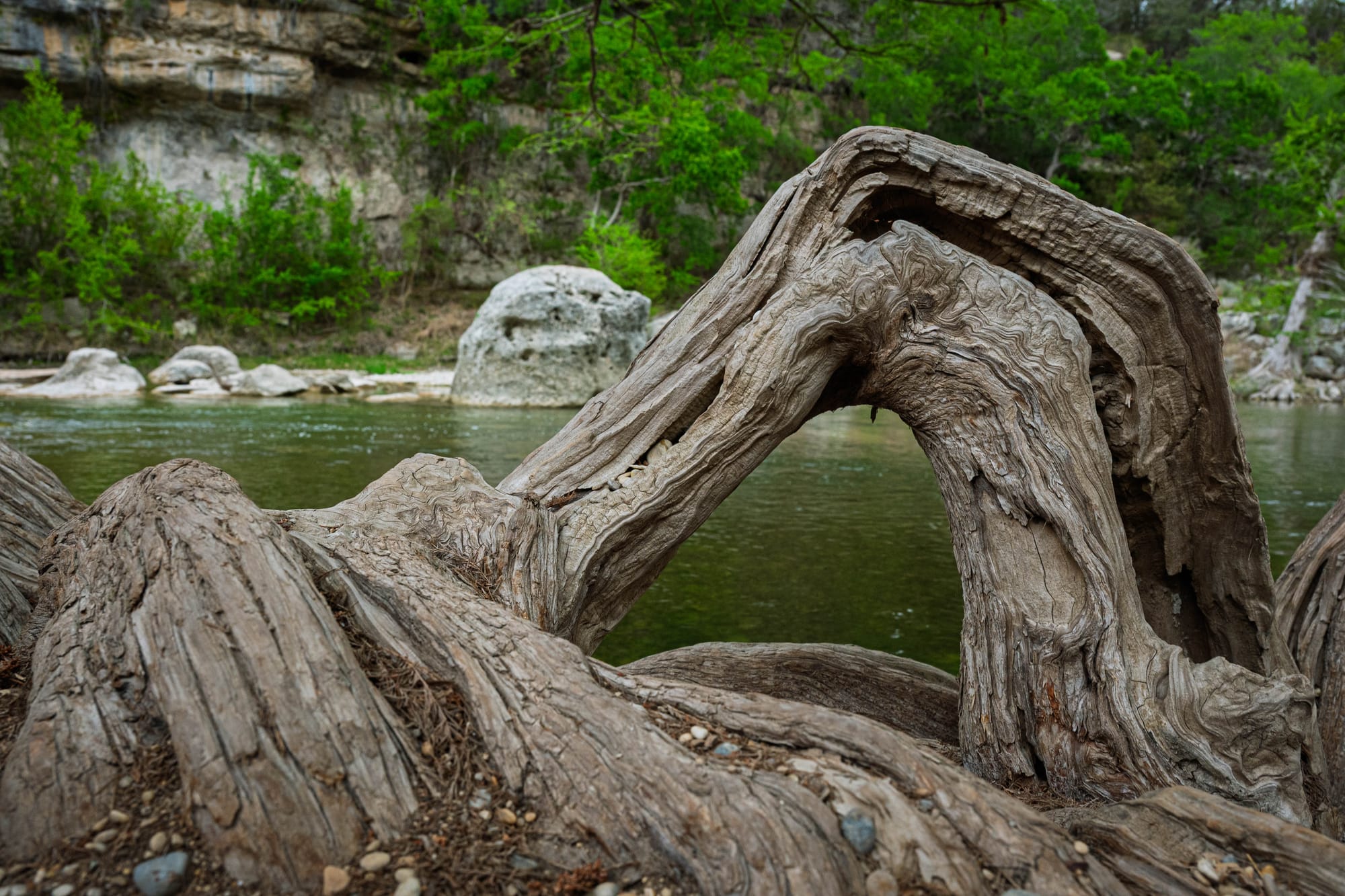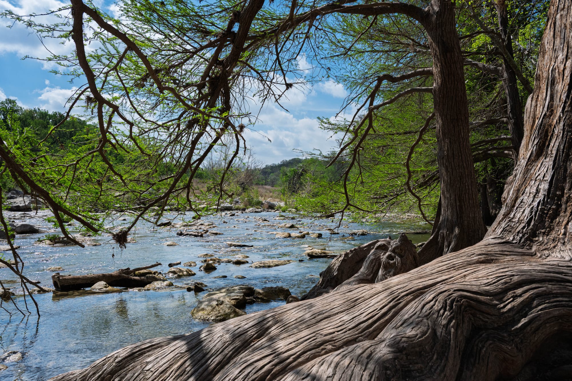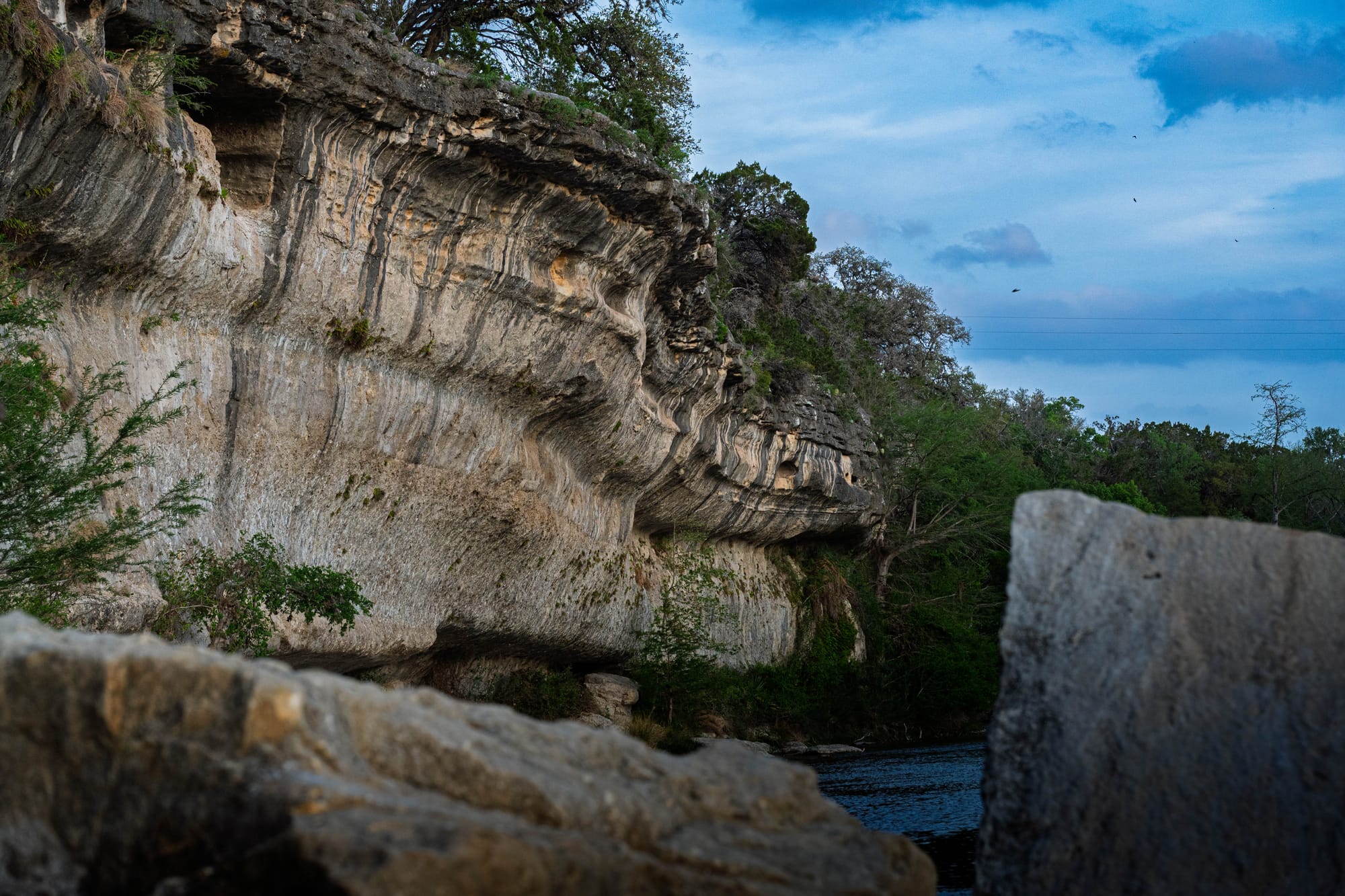 The gorge, shelves, and exposed banks come from the Guadalupe cutting down through very old sedimentary rock laid down more than 100 million years ago, including limestone, sandstone, and shale tied to the Trinity Group. The broader Hill Country landscape was also shaped by uplift and faulting along the Balcones Fault Zone, then slowly carved by water over time.