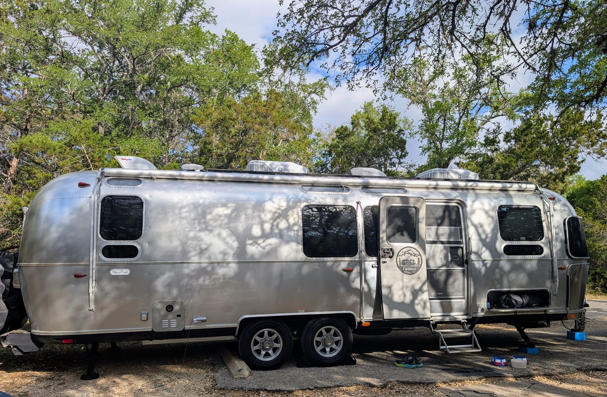 Guadalupe River State Park was a good setup for doing this alone. The road bent naturally into the site, so backing in was simple. No tight turns, no awkward angle, no drama.