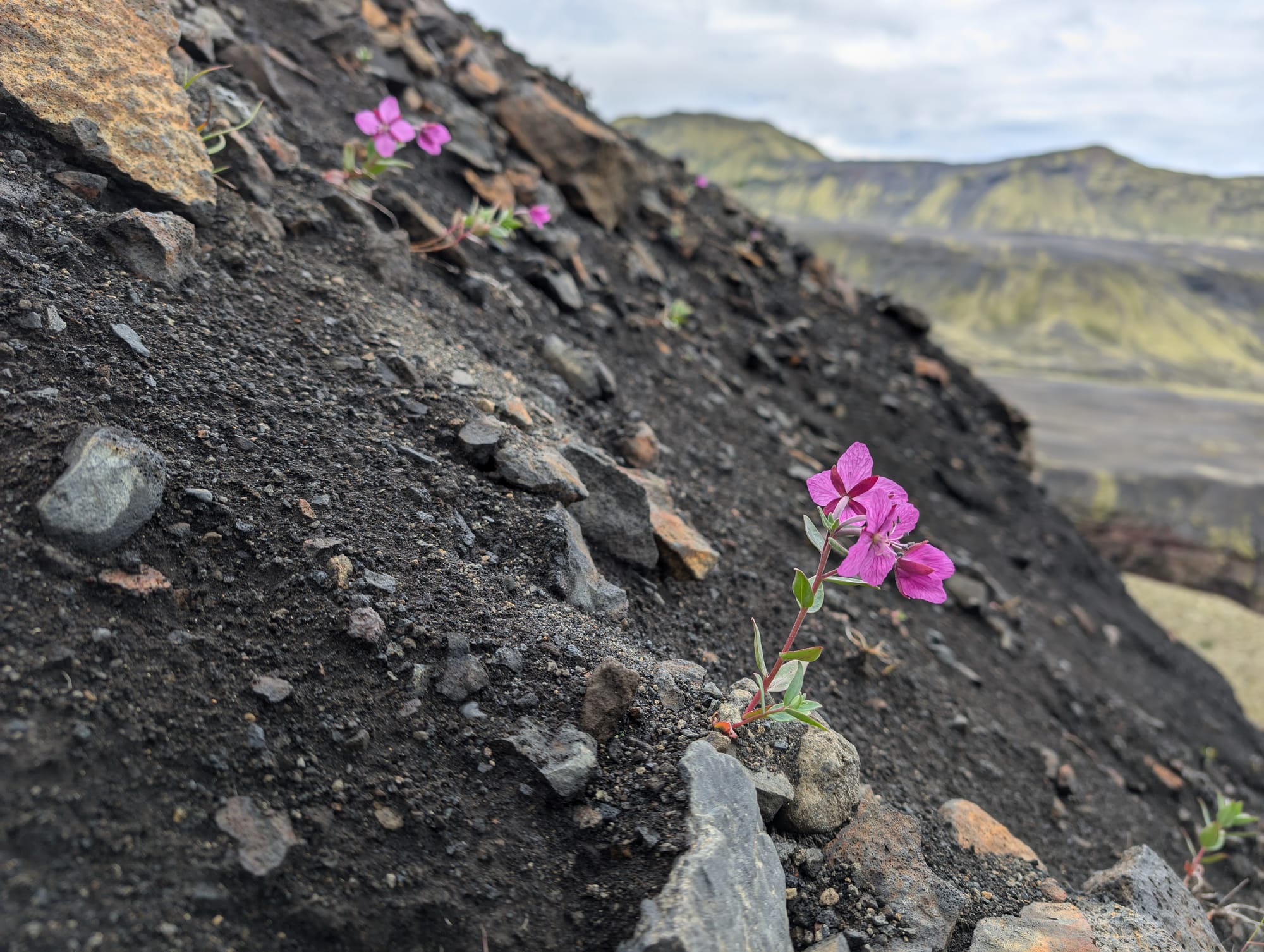 Þórsmörk feels greener because it’s sheltered. You’re down in a protected valley where wind isn’t stripping everything bare, the temperatures feel a little less harsh, and volcanic soils can actually hold enough nutrients for plant life to take off. After days of exposed highland terrain, the vegetation reads as a relief.