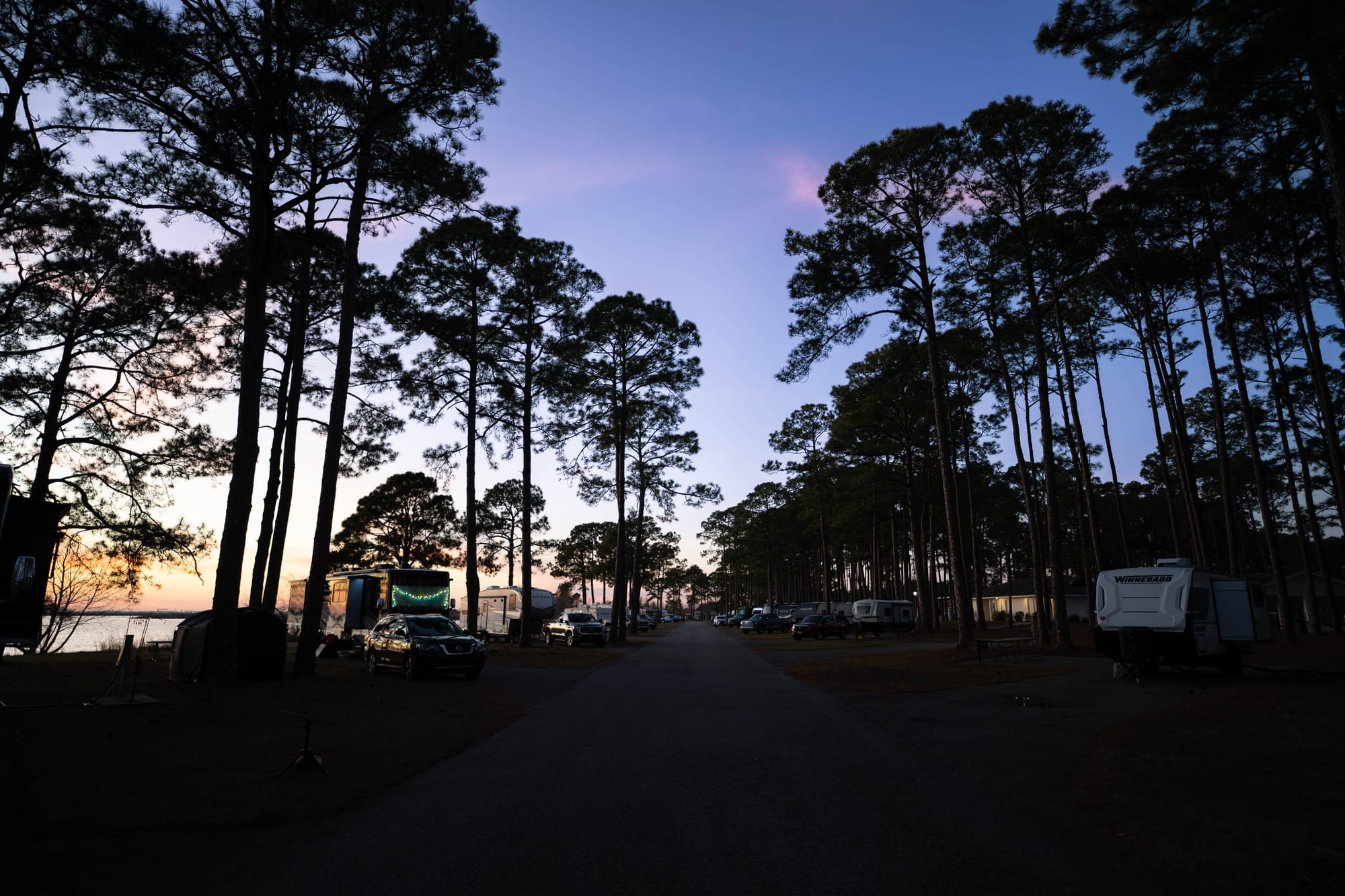 Meaher State Park works best as a calm, bayfront stop rather than an activity-driven destination. The strength of the park is its position on Mobile Bay, paired with reliable full hookups and solid facilities. Cold, windy weather limited how much time we spent outside, but the fishing piers and sunset views still anchored each day. In warmer conditions, this would be an easy place to linger, especially for travelers moving through the area or looking for a quiet waterfront reset.