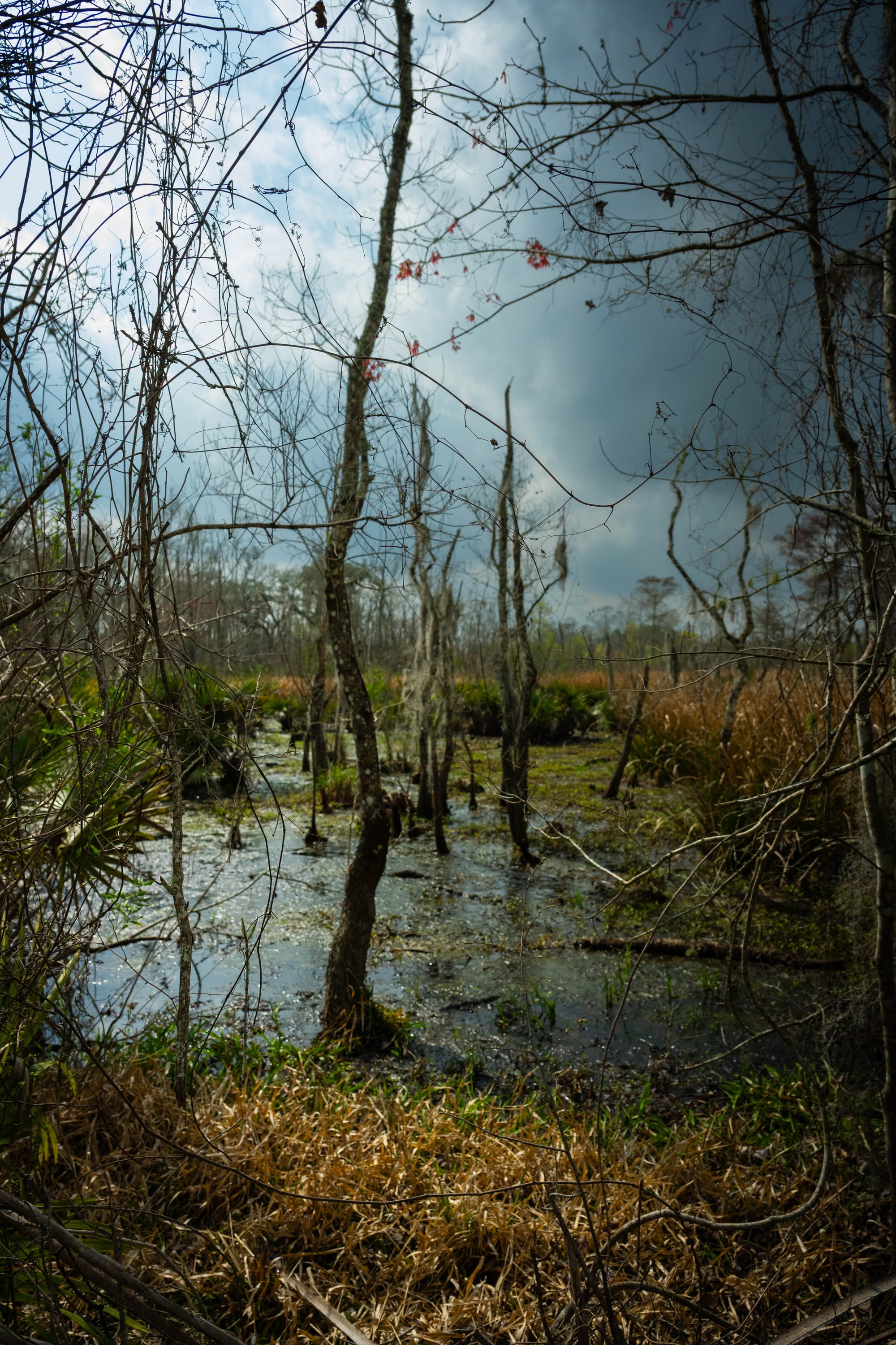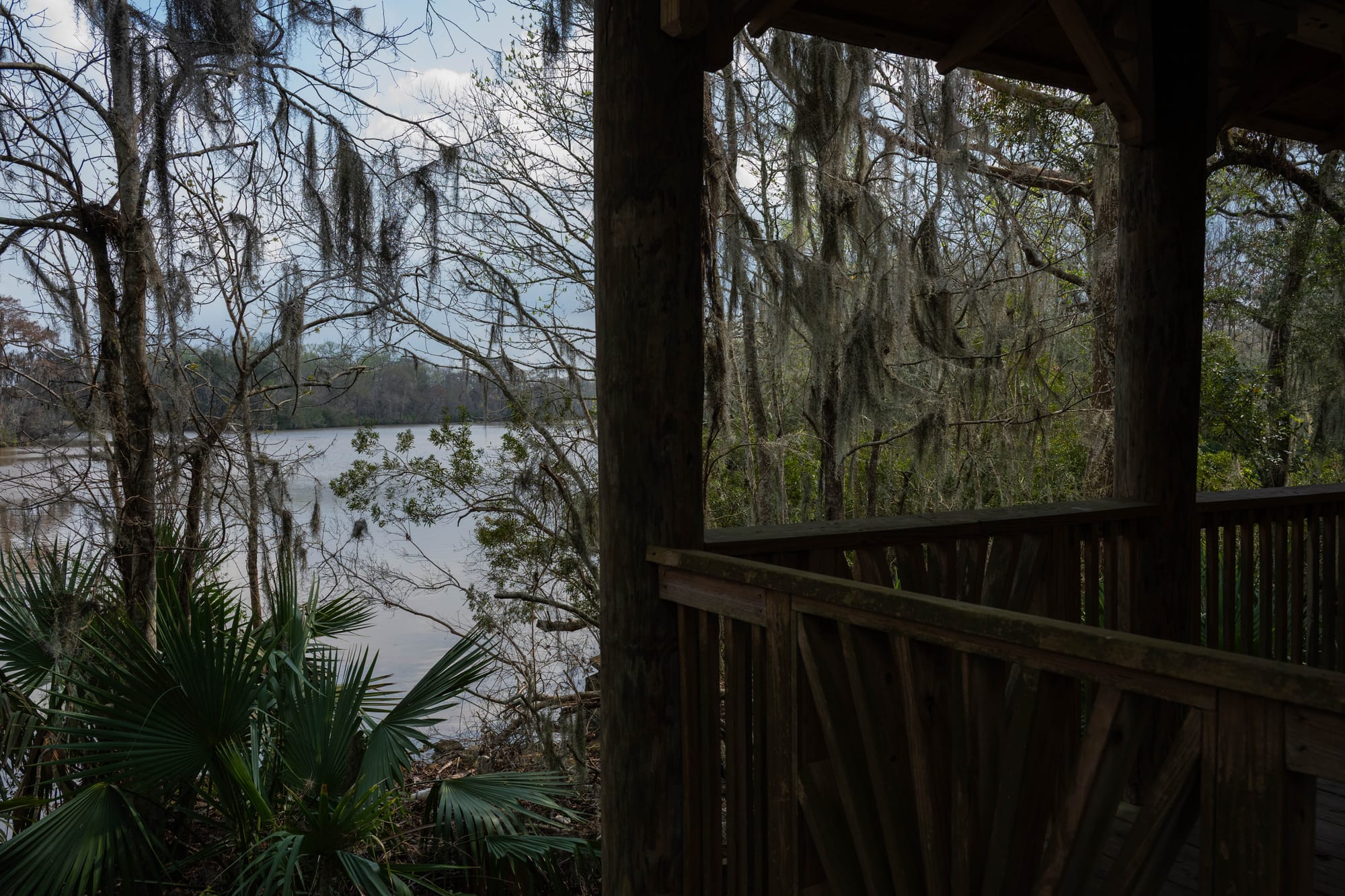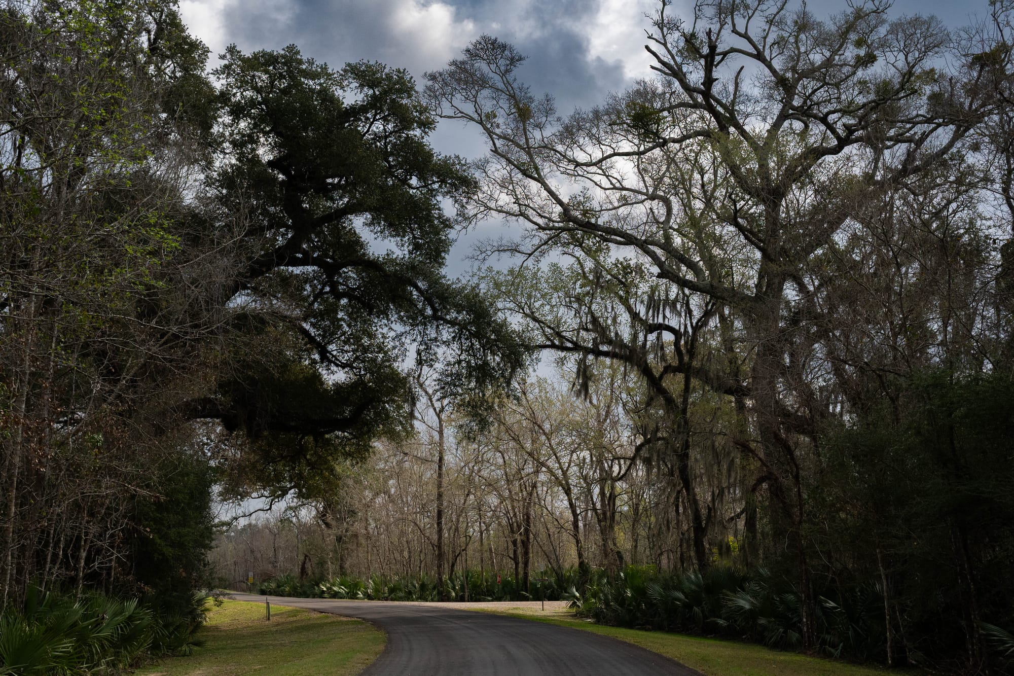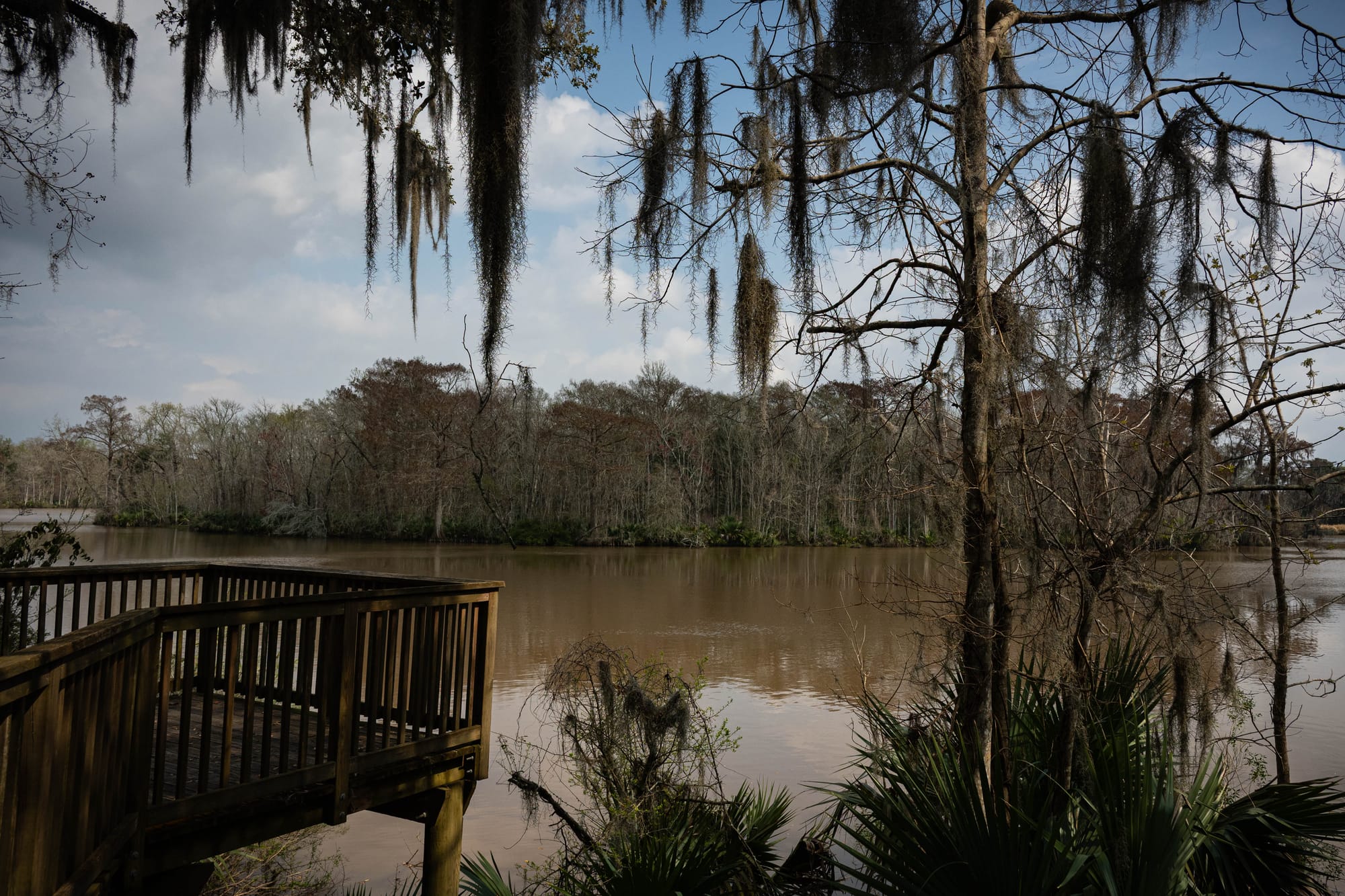 At Fontainebleau the live oaks and Spanish moss are the headline. Here the palmettos and swamp edge do more of the shaping. Same region, different emphasis.