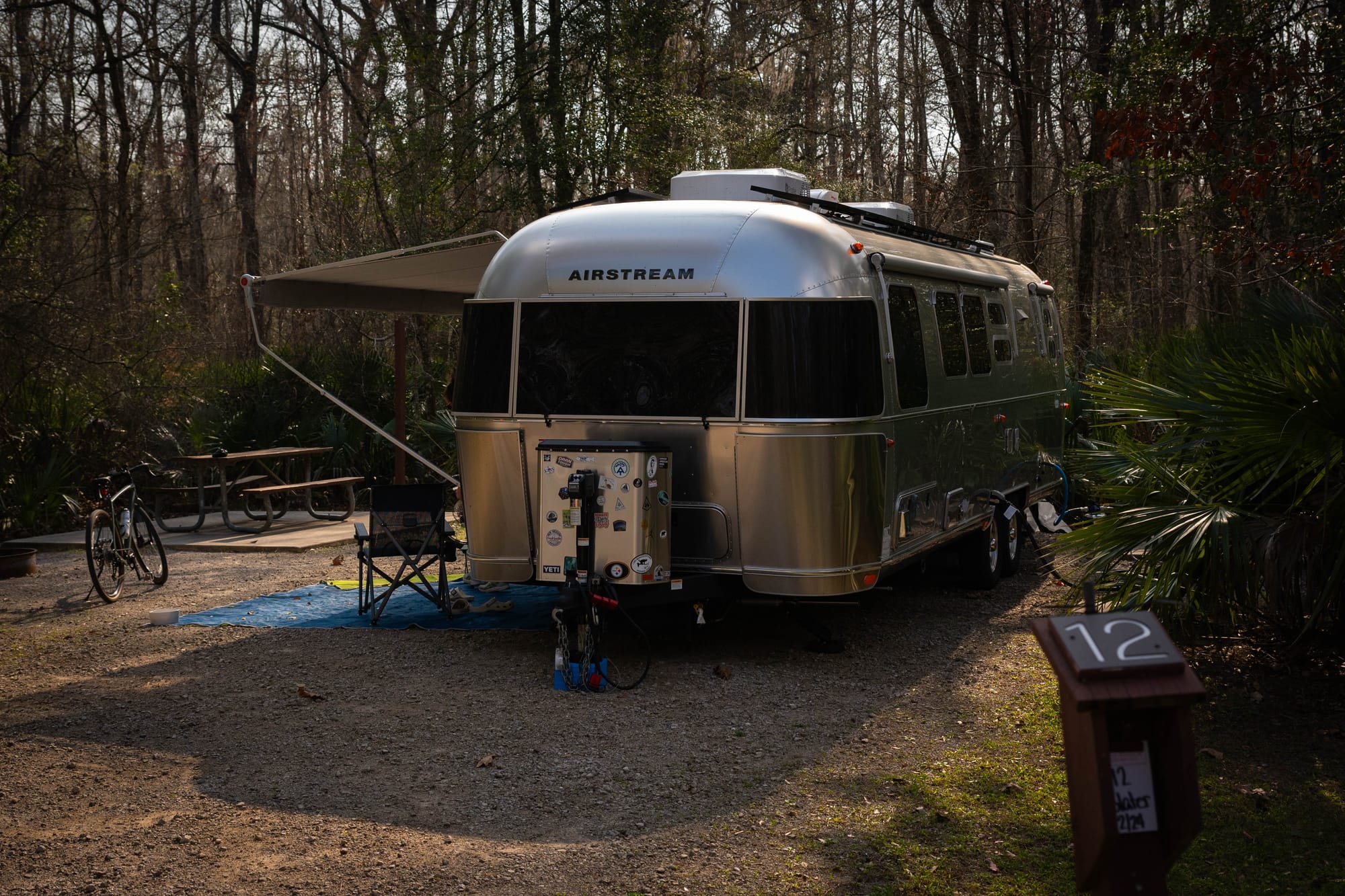 Palmetto Island State Park is an easy place to settle in. The campground has real privacy and the trails are small but repeatable in a way that fits daily life. The biggest payoff is the landscape itself. Oaks, palmettos, and swamp water that looks completely different depending on whether the sky is gray or clear. We barely left the park and did not feel like we missed anything.