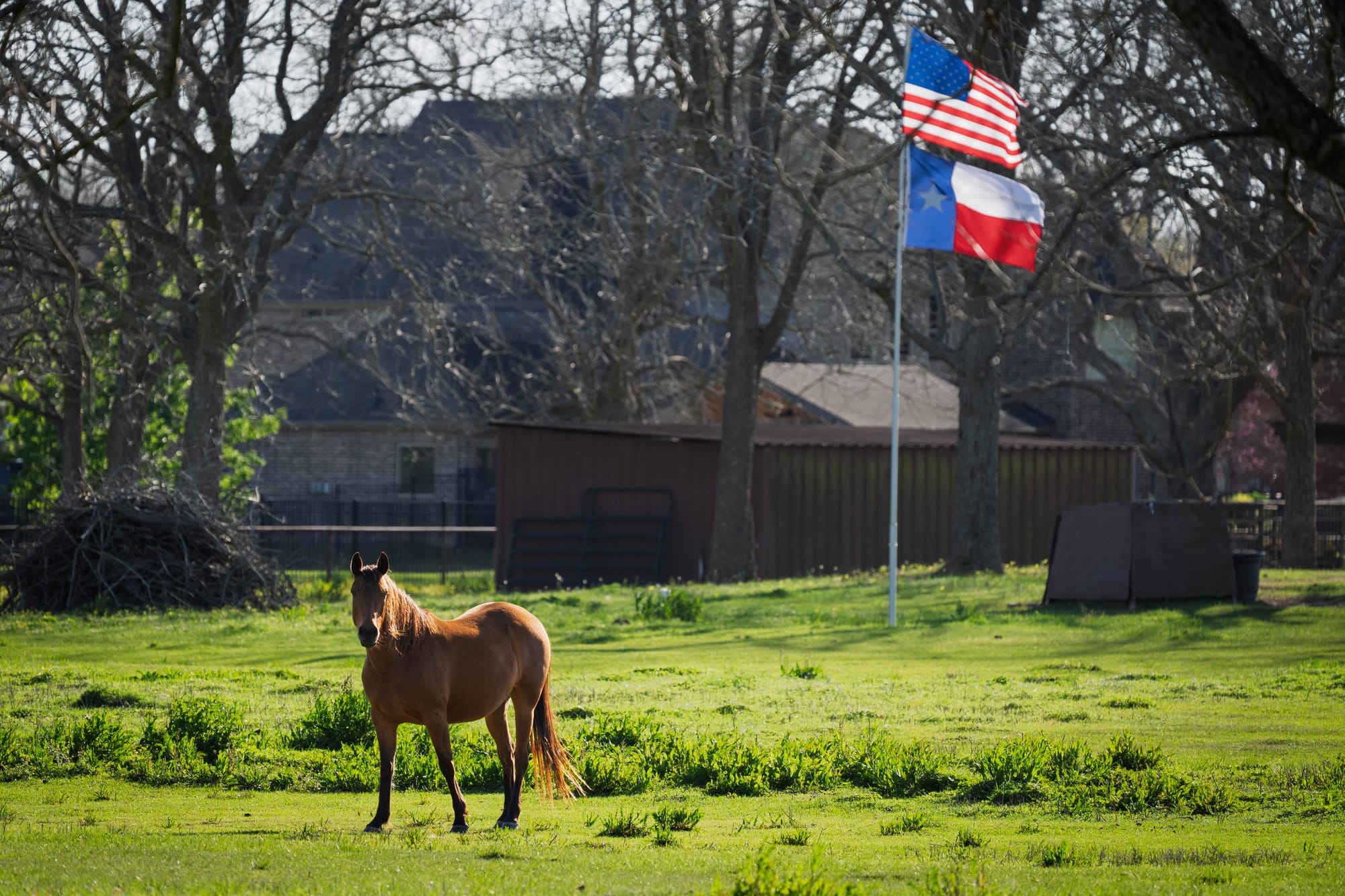 From the rig, the view opens out instead of closing in. One side looks over a pasture with a handful of horses that move slowly throughout the day. The other direction faces a large estate home that looks like something off the cover of Hotel California. Not close enough to feel like a neighbor, but always there in the background.