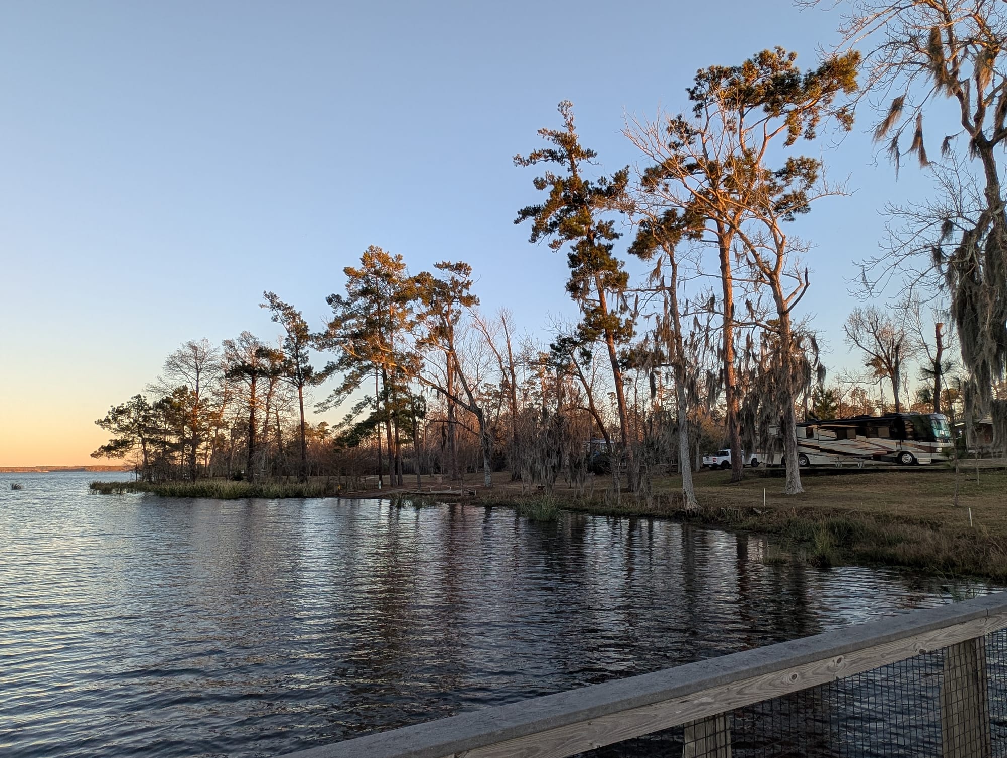 During our stay, temperatures dropped below freezing, cold enough that we had to disconnect from water and rely on heat inside the rig. In that context, the openness of the campground became a benefit rather than a drawback — with fewer trees around, we welcomed every bit of sunlight and warmth we could get. We set up camp just as we normally would, and daily life settled into a familiar, comfortable rhythm.